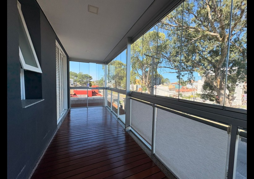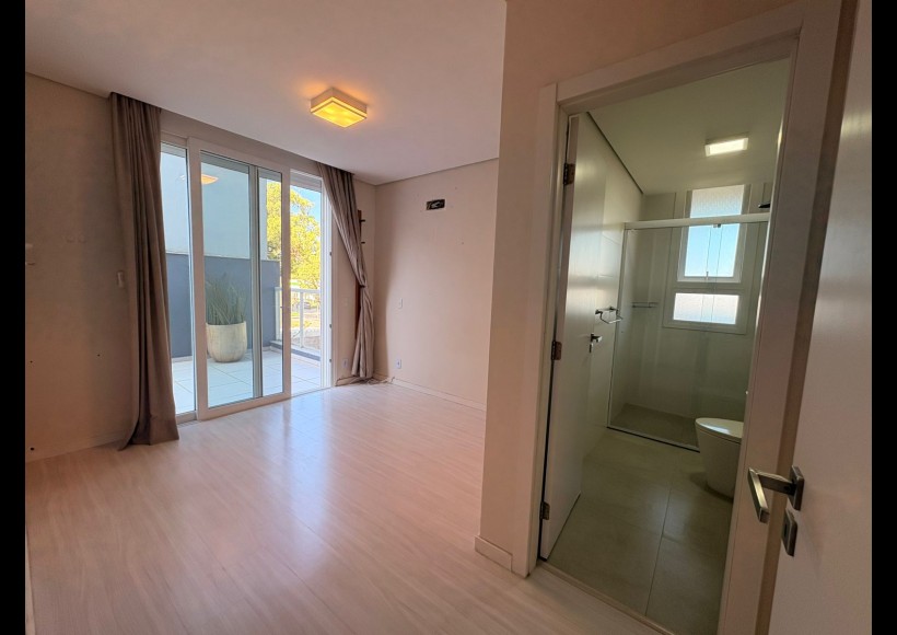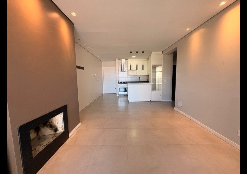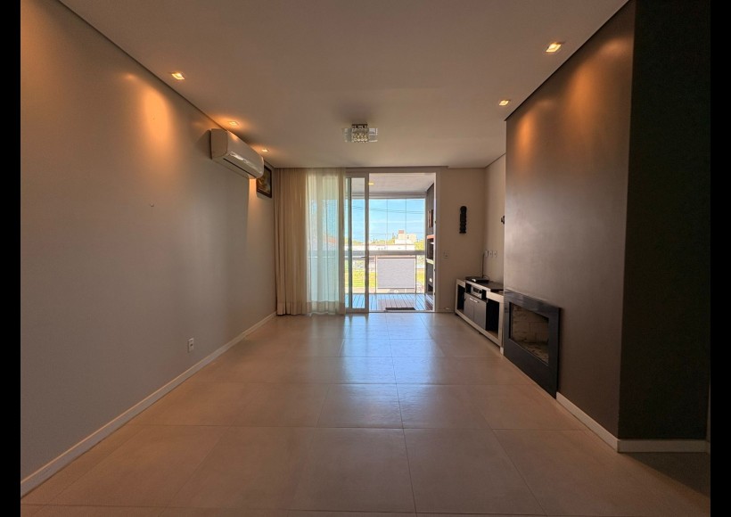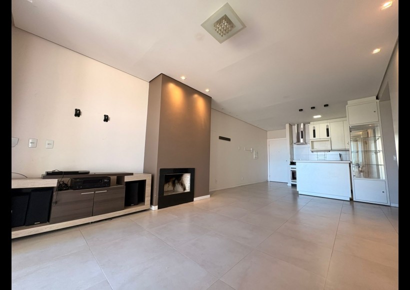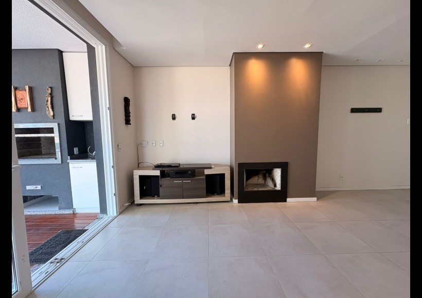 Sala de estar (com lareira) e jantar conjugadas com a cozinha, três dormitórios (dois suítes), distribuidor de peças com armário embutido. Persianas automatizadas.