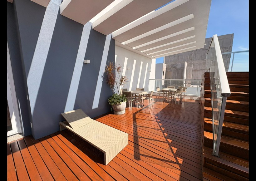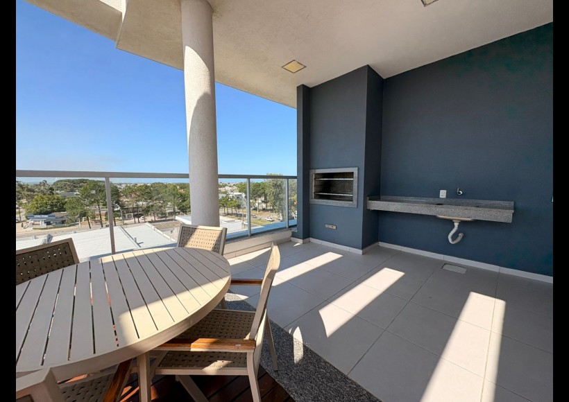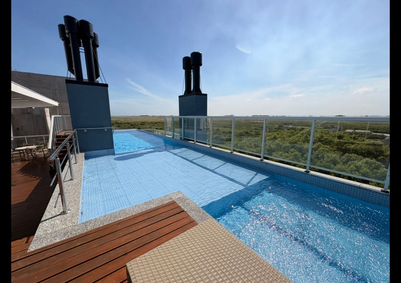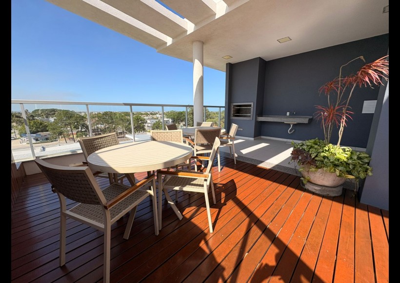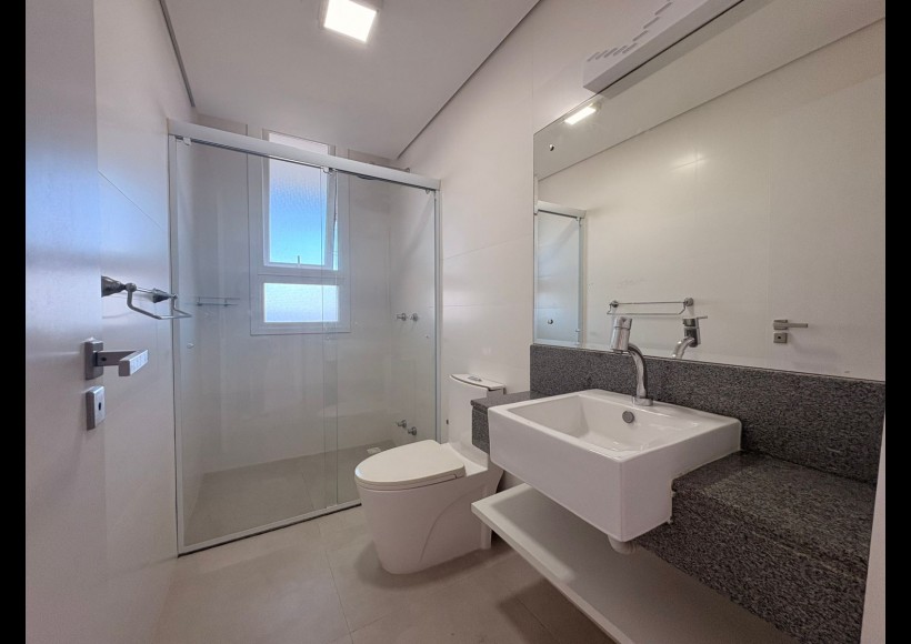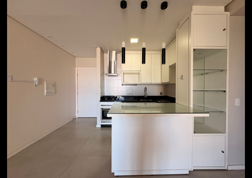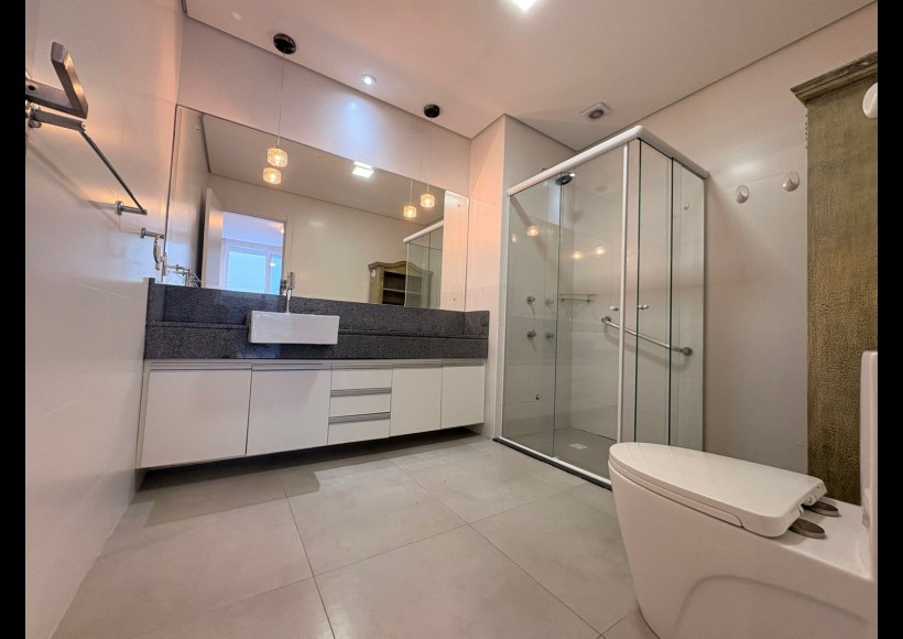 Sala de estar (com lareira) e jantar conjugadas com a cozinha, três dormitórios (dois suítes), distribuidor de peças com armário embutido. Persianas automatizadas.