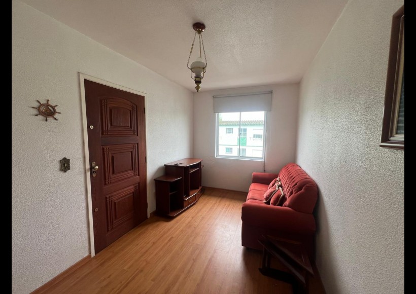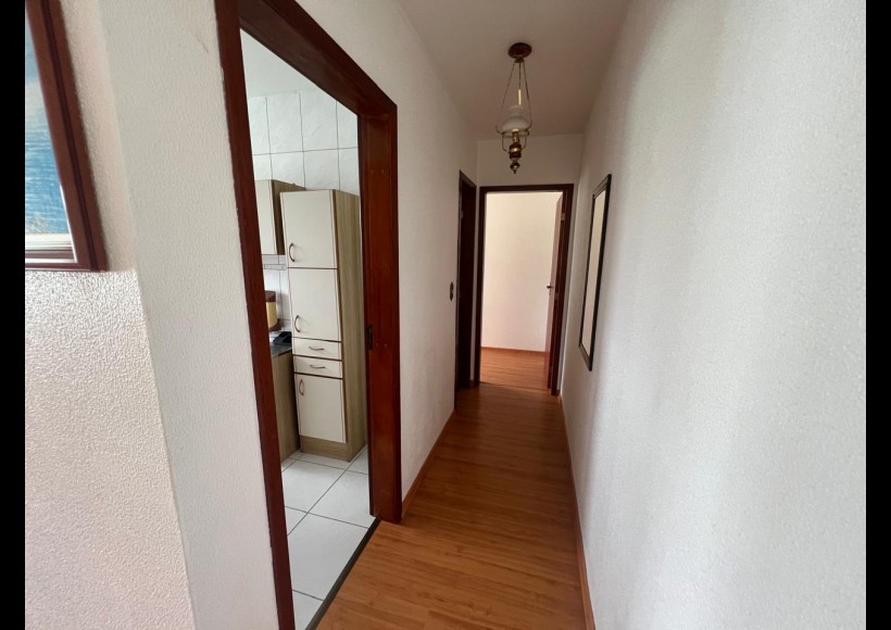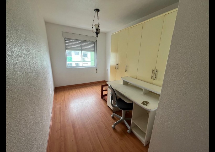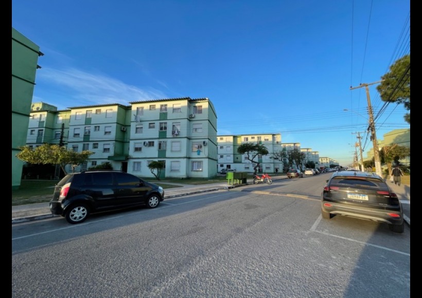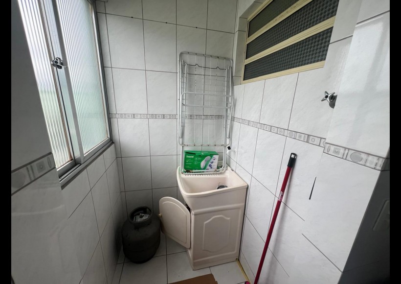 Apartamento de 01 (um) dormitórios, sala, distribuidor, banheiro, cozinha e área de serviço.