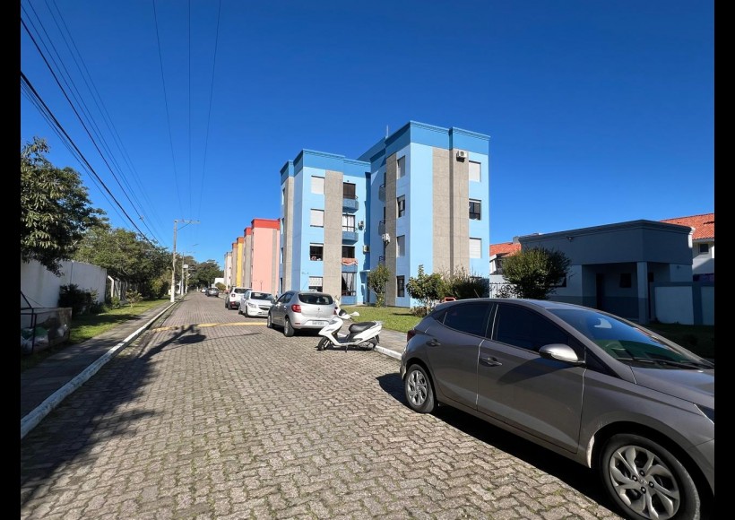 Apartamento de 02 dormitórios, sala com sacada, banheiro, cozinha e área de serviço.