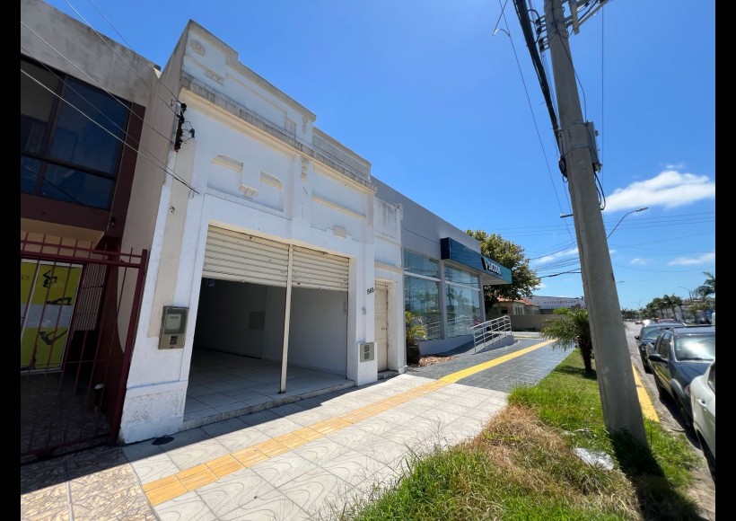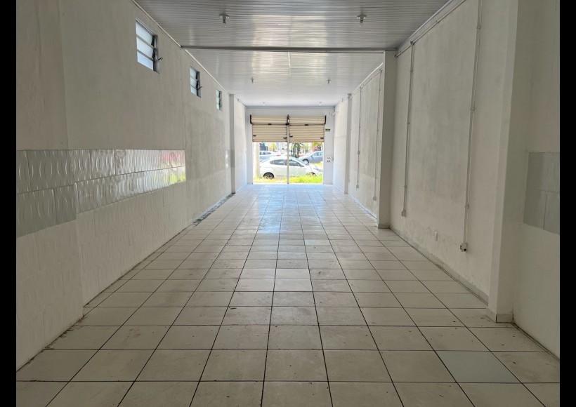 Loja com aproximadamente 100m², salão amplo, cozinha e dois banheiros.