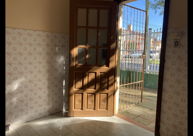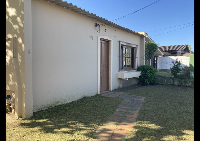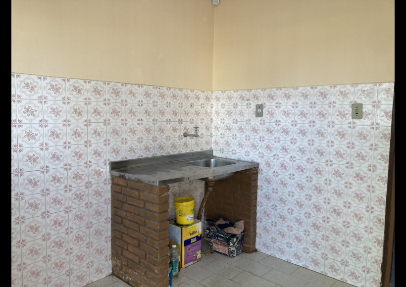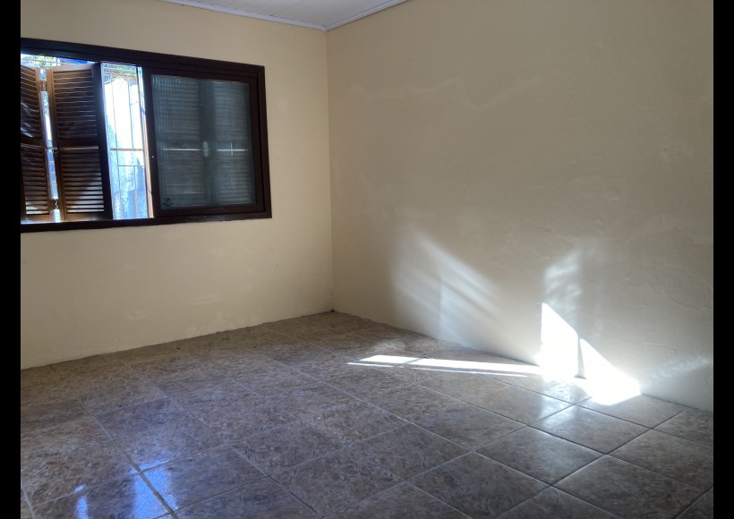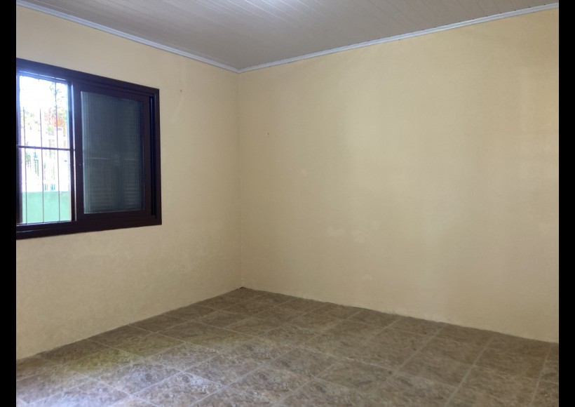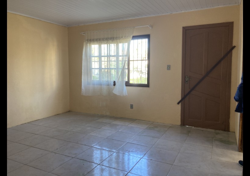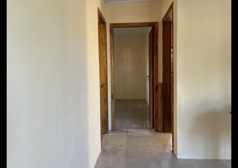 Sala, cozinha, dois dormitórios, cozinha, banheiro e lavanderia nos fundos.