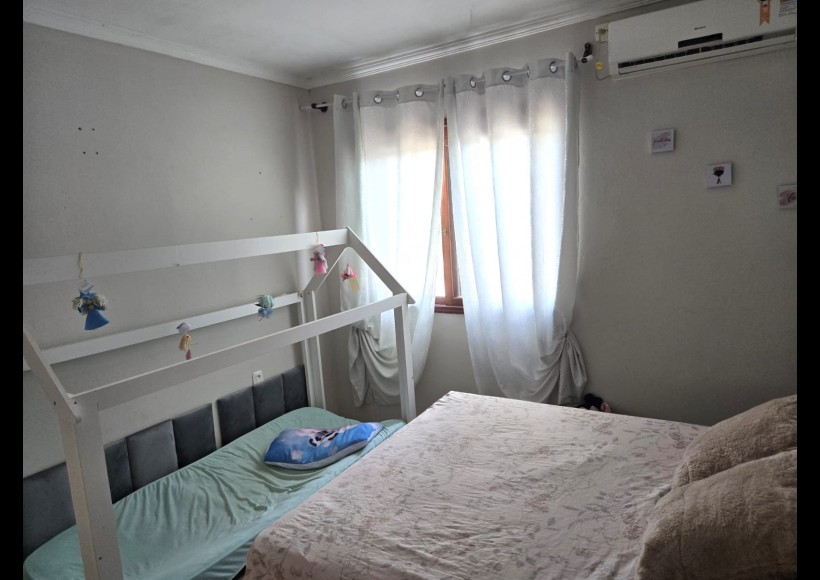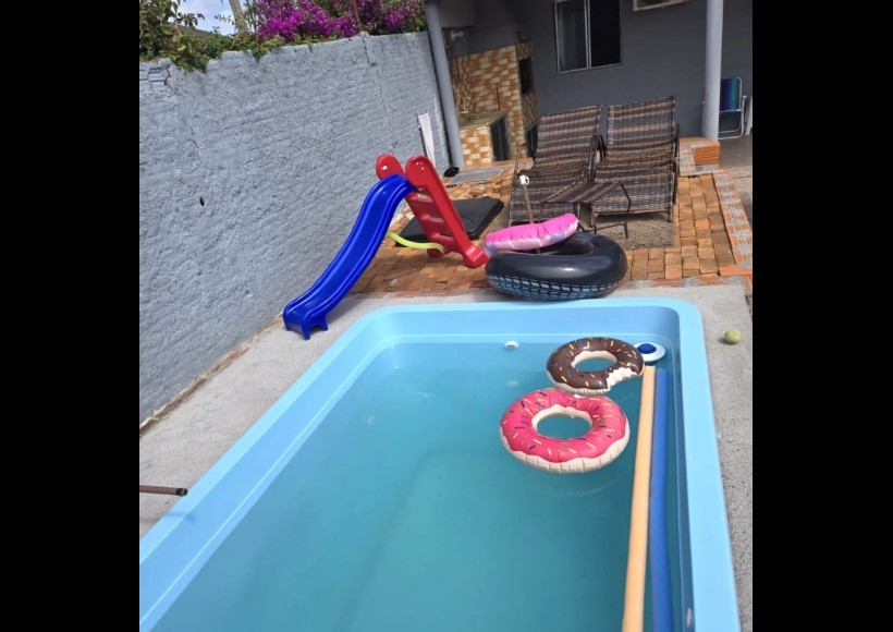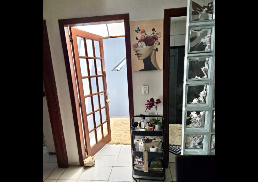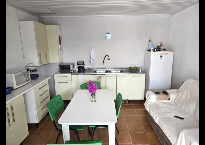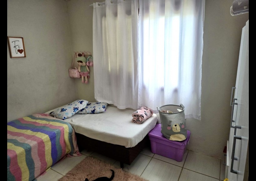 Nos fundos: sala e cozinha conjugadas, dois dormitórios e banheiro.