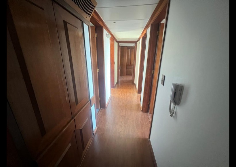 Andar inteiro com hall de entrada, sala ampla com lareira, escritório, sala de jantar, espaço gourmet com churrasqueira, cozinha, dependência completa de serviço, lavabo, quatro dormitórios (um suíte), sacada e vaga dupla para veículo.