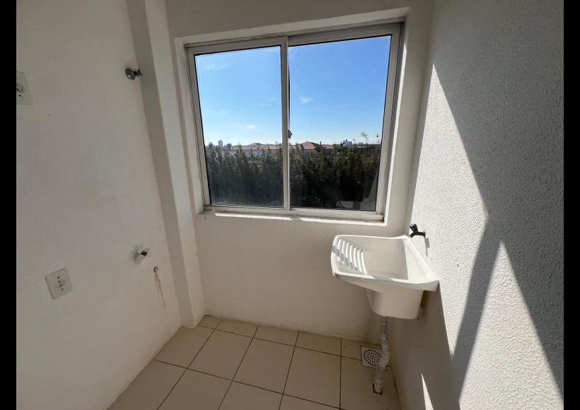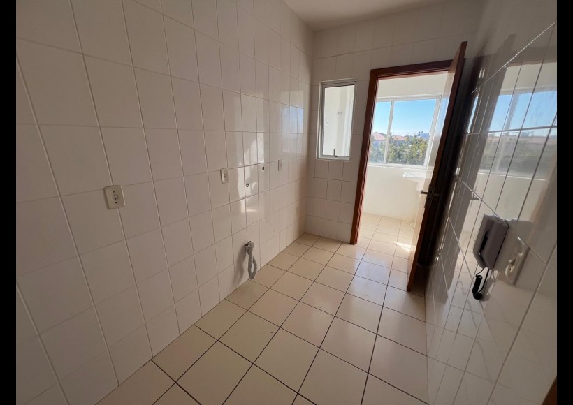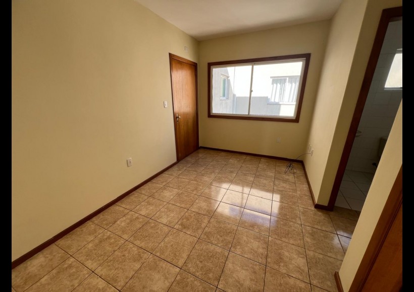 Apartamento de 01 dormitório, sala com sacada, banheiro, cozinha e área de serviço.