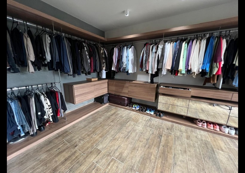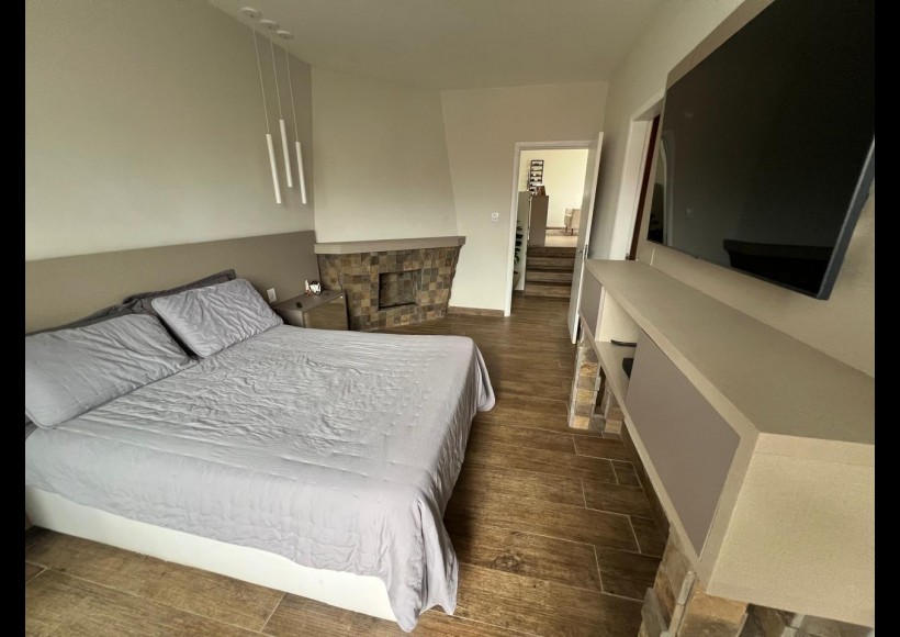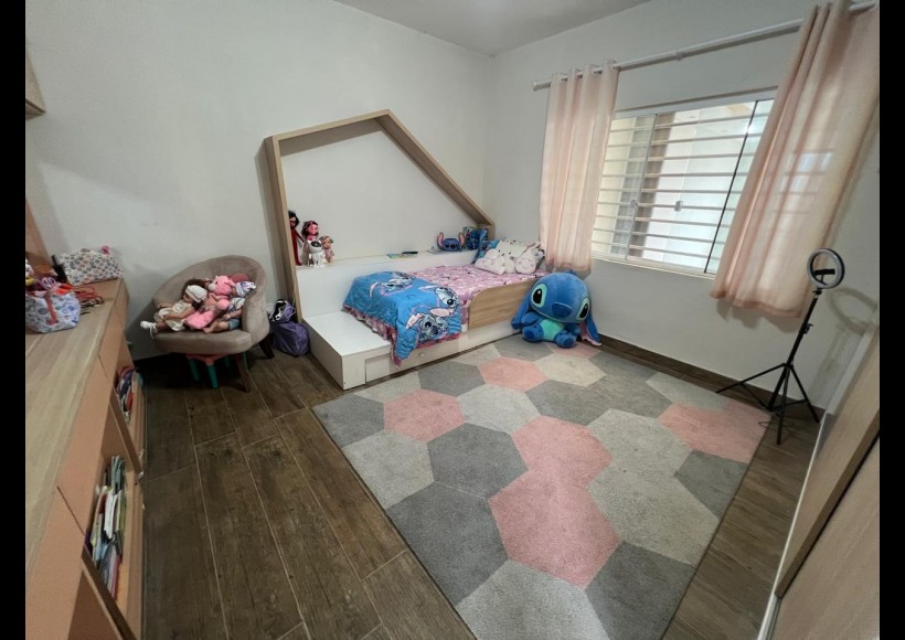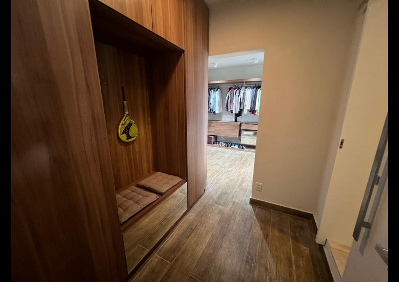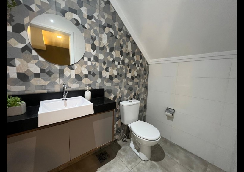 No segundo piso, o imóvel oferece uma excelente suíte com closet, dois dormitórios, banheiro social, sala de estar íntima e um espaço exclusivo com sala de cinema e academia.